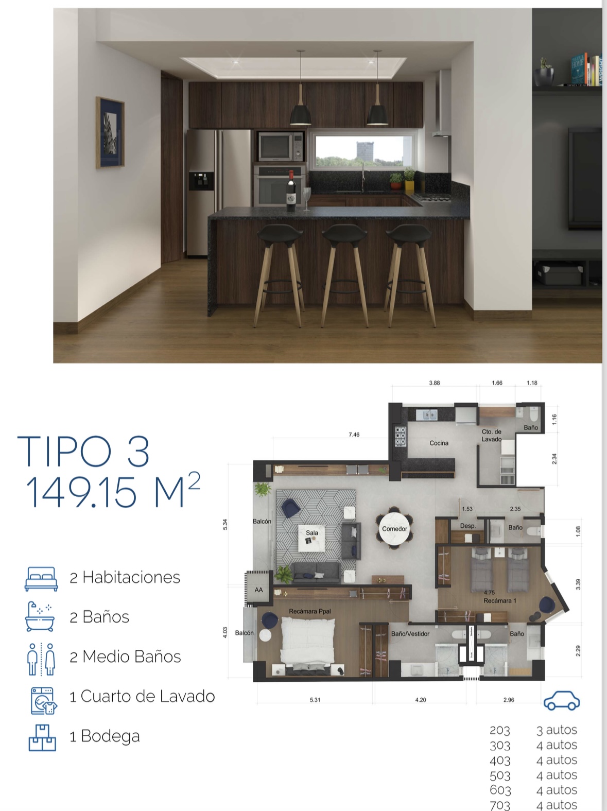 Mar Mediterráneo es una torre ubicada en el corazón del Country en Guadalajara, con una ubicación privilegiada que ofrece paz y tranquilidad en medio de la ciudad. La torre cuenta con tres niveles de sótano y ocho niveles de departamentos, con solo 22 unidades. El departamento en venta se encuentra en el piso 3 y ofrece 149 m² habitables. Tiene dos habitaciones, dos baños completos, dos medios baños, amplia sala-comedor, cocina y cuarto de lavado. Incluye dos cajones de estacionamiento en el segundo sótano con dos elevadores de autos y una bodega de 4.71 m² en el sótano 1. La fecha de entrega es en abril de 2025. Las amenidades incluyen seguridad 24/7, lobby, dos elevadores, sala de juntas y una terraza en el último nivel.